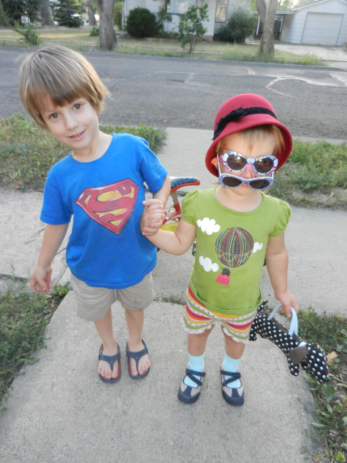 In case you can't tell, Arabelle's "sandwich" is comprised of a pear slice, a yogurt, a fake hamburger patty, and two half-slices of bread on bottom. |